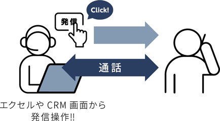 ワンクリックでエクセルやCRM画⾯から発信が可能、架電効率もアップ︕